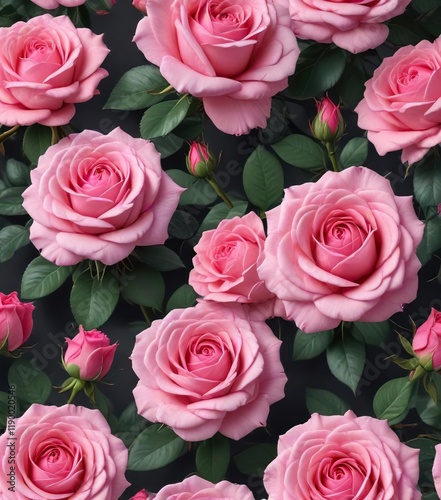 Seamless modern roses pattern with vibrant pink blooms, vibrant, chic, bright