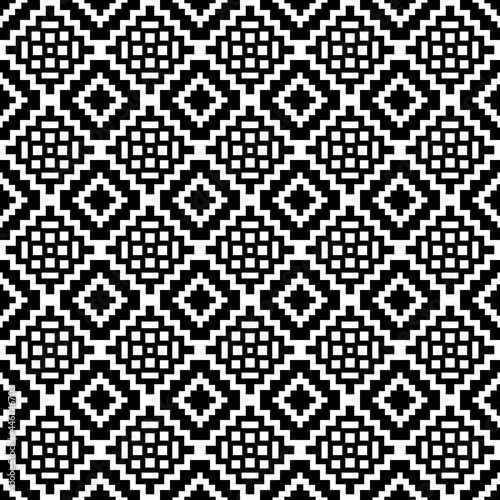 Seamless ornament rhombuses pattern. Vector pixel cornered black and white repeated each one rhomb wallpaper.