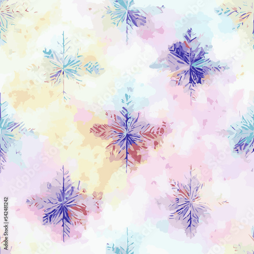 Seamless pattern christmas snowflake, watercolor xmas endless pattern. Winter holidays