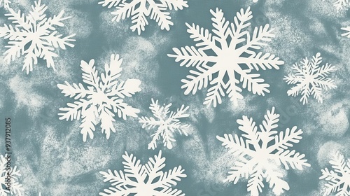 seamless pattern, Elegant white snowflakes scattered on a muted teal background, perfect for winter themes and festive designs.