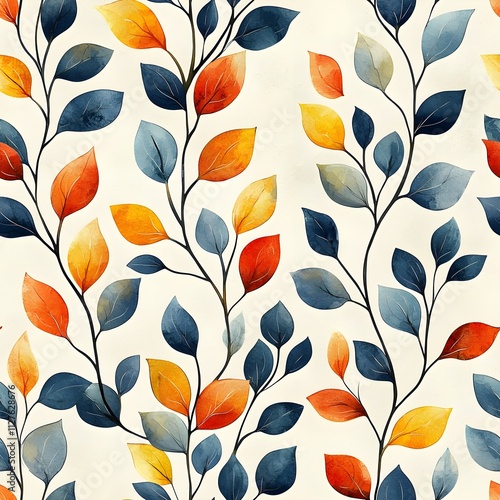 Seamless pattern for a watercolor painting of leaves in a subtle bohemian style