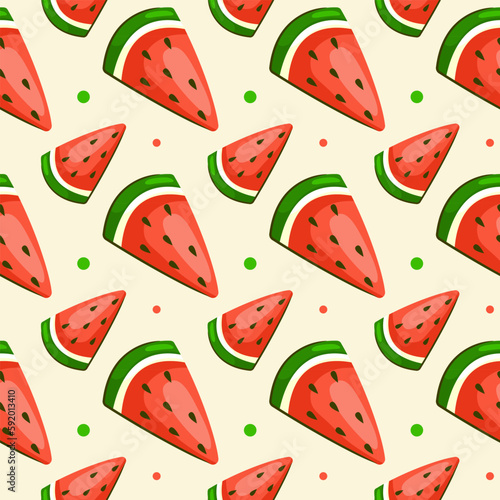 Seamless pattern in the form of watermelon pieces. Fruit and berry seamless summer background. A pattern from Juicy couture. Vector illustration