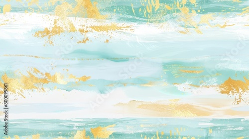 Seamless pattern of abstract painting with turquoise and gold, suitable for creative backdrops or modern interior decor.