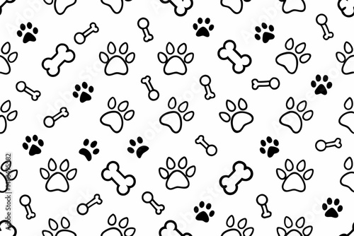 Seamless Pattern of Dog Paw Prints and Bones