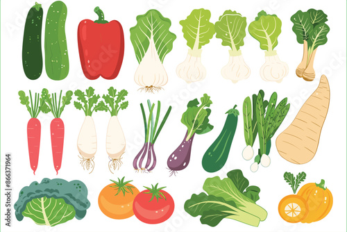 Seamless pattern of fresh vegetables. Collection of hand drawn vegetable illustrations isolated on white background. Set of various kinds of vegetable, isolated on a white background.