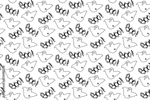 Seamless pattern of ghosts in doodle style. Horror creatures. Halloween party symbols. Can be used for scrapbook digital paper, textile print, wallpaper. Vector hand drawn illustration.