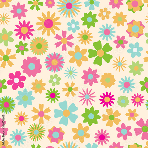 Seamless pattern of multicolored flowers