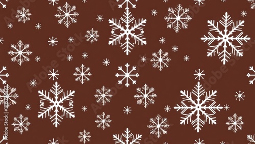 Seamless Pattern of White Snowflakes on Brown Background