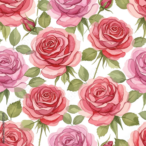 Seamless Pattern, Seamless pattern of pink roses with green leaves on white background for textile design Stock royalty free.