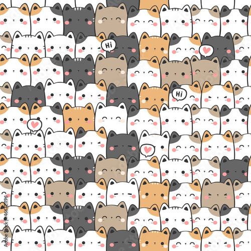 seamless pattern with chubby cat kitty cartoon vector illustration