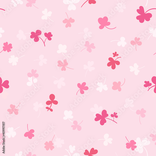 Seamless pattern with clover leaves.Magical plant. Background for St. Patrick's Day. Colorful endless backdrop with trefoils and quatrefoils. Shamrock. Irish story.