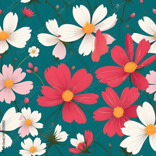 Seamless pattern with cosmos flowers