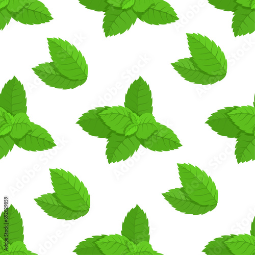 Seamless pattern with green mint leaves.Vector graphics.