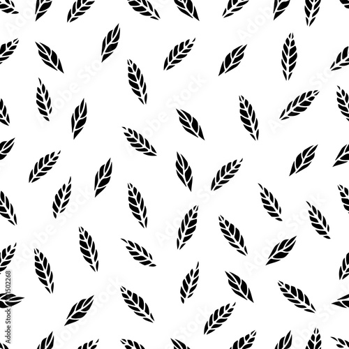 Seamless pattern with hand-drawn doodle leaves on a white background for cards, festive decoration.