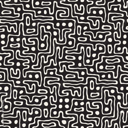 Seamless pattern with maze lines. Monochrome abstract background. Vector hand drawn labyrinth.