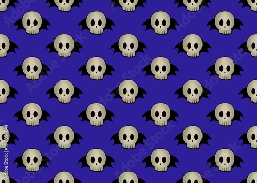 Seamless pattern with skulls. Background with skulls on a blue background. Halloween pattern.