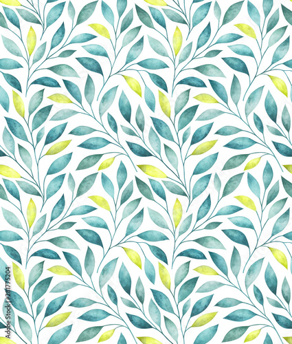 Seamless pattern with stylized tree branches. Watercolor illustration.