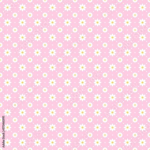Seamless pattern with white flower on pink backgrounds