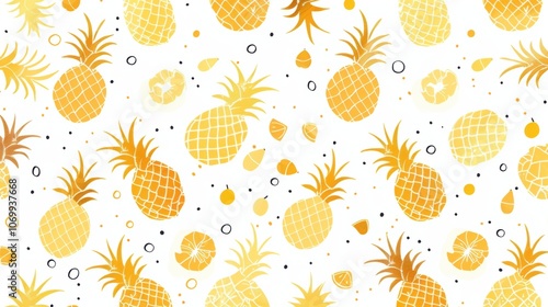 Seamless Pineapple Pattern Tropical Fruit Summer Design White Background