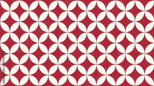 seamless red and white interlocking circles forming a bold, pattern on a clean background. Ideas for party decor, wrapping paper, or dynamic graphic design projects