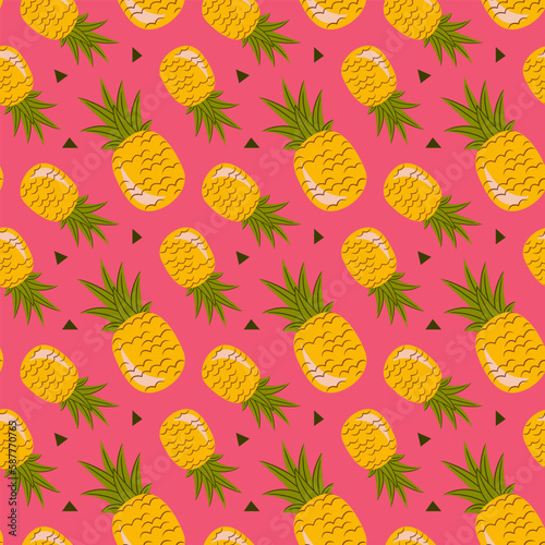Seamless tossed summer pineapple fruit illustration background pattern in vector