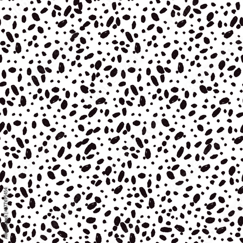 Seamless vector pattern with ink-black dots isolated on white background. Trendy graphic design for ceramic tile wallpapers, textile, wrapping gifts