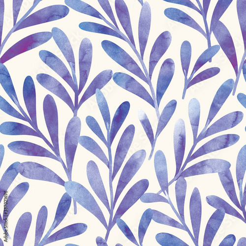 Seamless watercolor botanical pattern. Digitally hand painting floral background. Modern leaves design for fabric, wallpaper, surface.
