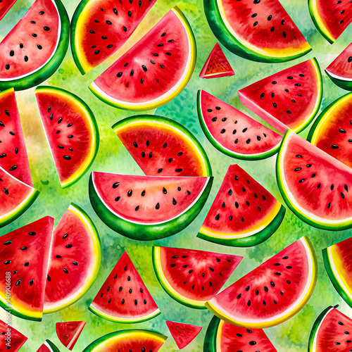 Seamless watercolor green pattern of watermelon, fruit theme