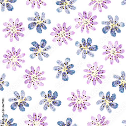 Seamless watercolor pattern of decorative flowers.