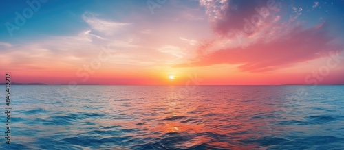 Seascape sunrise or sunset on the horizon. Creative banner. Copyspace image