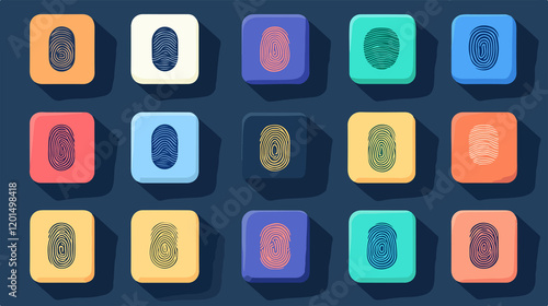 Secure Fingerprint Touch ID Icons for Authentication and Security Protection