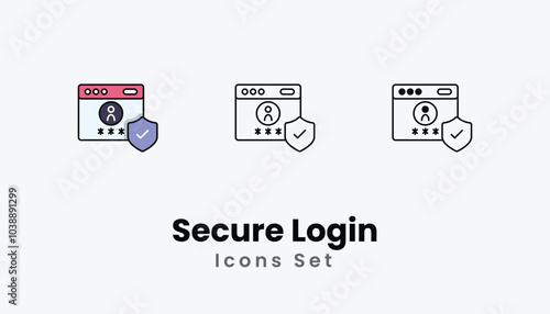Secure Login Icons thin line and glyph vector icon stock illustration