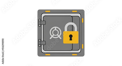 Secure Safe Box with Padlock Icon. Digital Security and Data Protection Symbol. Financial Vault Graphic Element.