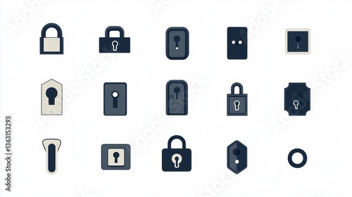 Security icons, digital design, white background, website graphic