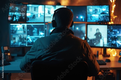 Security Operator Monitoring Multiple Surveillance Screens