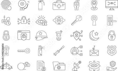 Security system outline icon collection vector illustration safety access control and surveillance
