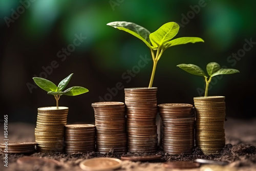 Seed illustration growing on gold coins, financial investment business concept background