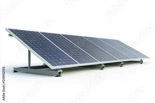 Selective focus solar panels isolated on white background, Renewable energy generator.