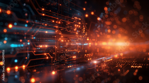 Semiconductor and circuit board with data flowing.