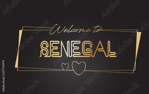 Senegal Welcome to Golden text Neon Lettering Typography Vector Illustration.