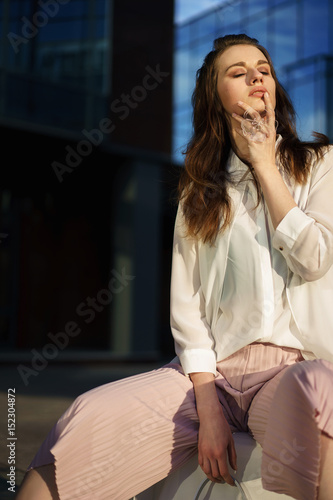 Sensual vogue model posing outside