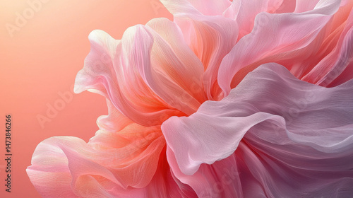 Serene abstract 3D flower background rendered in realistic 4K detail featu delicate pink petals and soft gradients creating a beautiful, flowing design.
