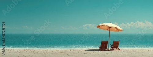Serene Beachscape with Umbrella and Beach Chairs