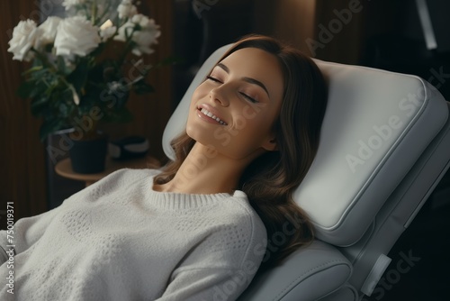 Serene beauty. young woman relaxing at tranquil location, peaceful atmosphere for relaxation