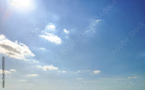 Serene Blue Sky with Fluffy Clouds and Bright Sunlight