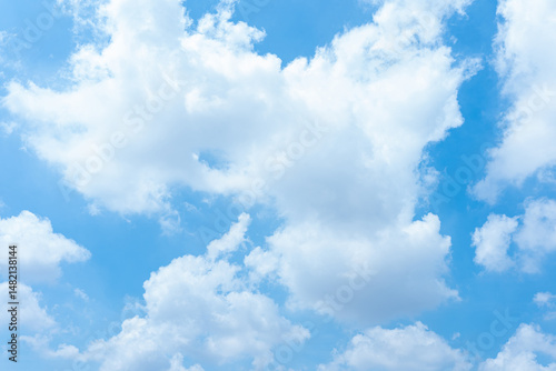Serene Blue Sky with Fluffy White Cumulus Clouds Natural Background Image
