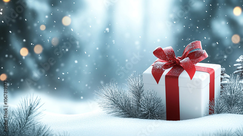 serene Christmas background featuring a white gift box and a blank caption space, ideal for adding your personalized holiday message or greeting