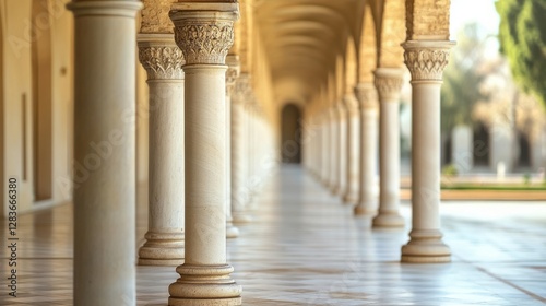 Serene Corridor with Timeless Columns and Architectural Elegance