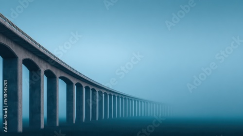 Serene Foggy Scene with a Long Bridge Over Water in a Minimalistic Landscape
