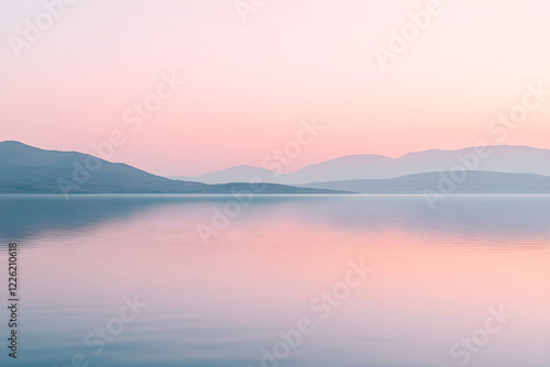 Serene Landscape at Dusk Reflecting Tranquil Waters and Mountain Silhouettes, Evoking a Sense of Onward Journey and Peace